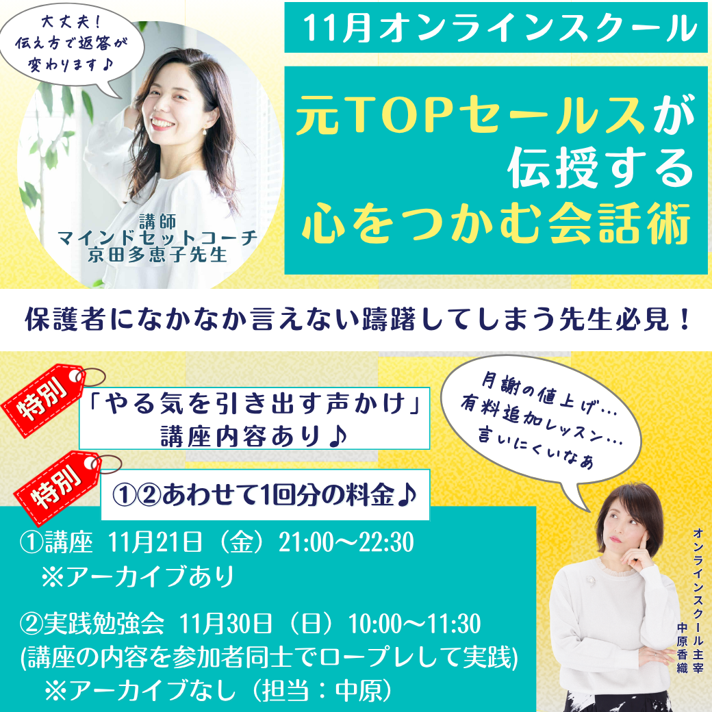 ①11/21(金)21:00~22:30(講義:京田多恵子先生)